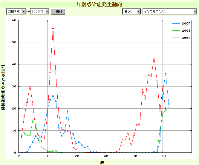 登米市のHPで情報公開するようになったがどうもタイムリーに提供できていないようである、本日 10/28は20:00現在更新されていない、これは 新規発生はないと考えてよいのだろうか? 毎週金曜日の更新もありませんね、月曜の夕方金曜日分も含めて公開しているようである、学校関係も中途半端であ り、話になりません、ほんとうに緊急時にはどうするのでしょうか、仕組みの早期構築を望む、これを書いた直後に28日分の更新がありました(更新時間をき ちっと決めるべき:毎日x時更新とかの記述を求む)2009.10.22 登米市新型インフルエンザ 前週並み?定点観測